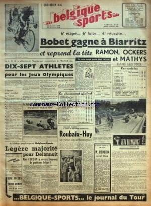 LA MORT DE M. HONHON - MAJORITE POUR DELANNOIT - CERDAN A BEAUCOUP DE PARTISANS BELGES - LE ROUBAIX-HUY - VANDERSCHRICK / CHAMPION DE BELGIQUE - BOBET GAGNE A BIARRITZ - RAMON - OCKERS ET MATHYS DANS LES PRIX - 17 ATHLETES POUR LES JEUX OLYMPIQUES. CLIQUEZ ICI POUR TÉLÉCHARGER LIVRE