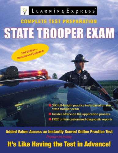 This completely updated second edition of State Trooper Exam provides fast, focused test preparation through instructional chapters and targeted practice on the most commonly tested topics: reading comprehension, writing, information ordering, mathematics, directional orientation, memory, visualization, problem solving, reasoning, judgment, and sensitivity. In addition, this guide offers a detailed, realistic study plan as well as informative chapters on the challenging oral appraisal exam, physical exam, medical exam, and psychological exam. State Trooper Exam 2e includes: Six full length (100-question) practice exams, based on the official state trooper exam Must-have tips for conquering test anxiety and boosting confidence Complete information that covers the application process and what to expect on the exam that guarantees a passing score Completely updated and revised second edition For many folks interested in becoming State Troopers or entering other professional fields that have state examinations, they are unable to perform to the best of their abilities not because the do not retain information, but because they know not how to manage time before the test. State Trooper Exam provides future test takers with the material they need to practice and perfect their skills. This book helps test takers understand that practice is a necessary part of everyday if people are to approach the exam with excellence and confidence.